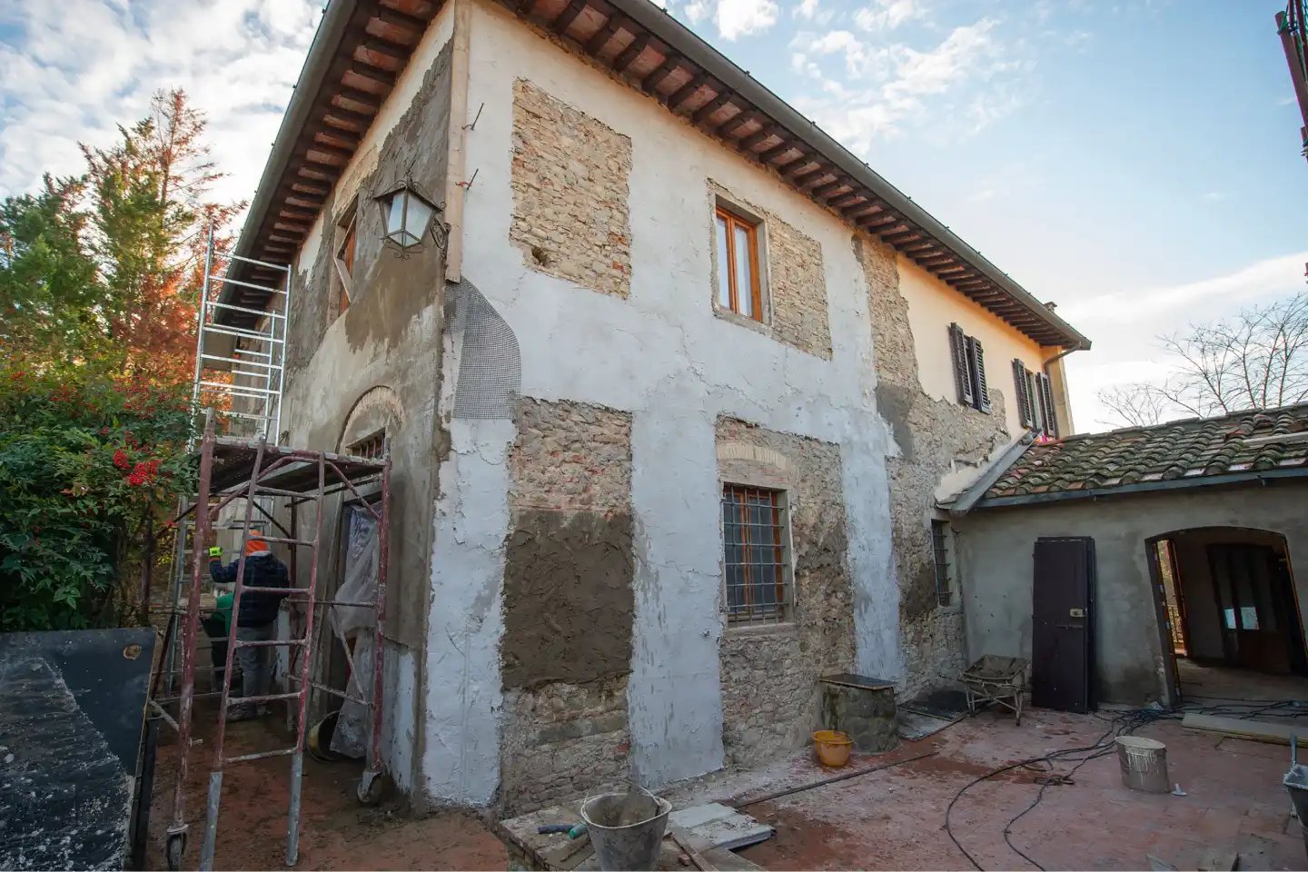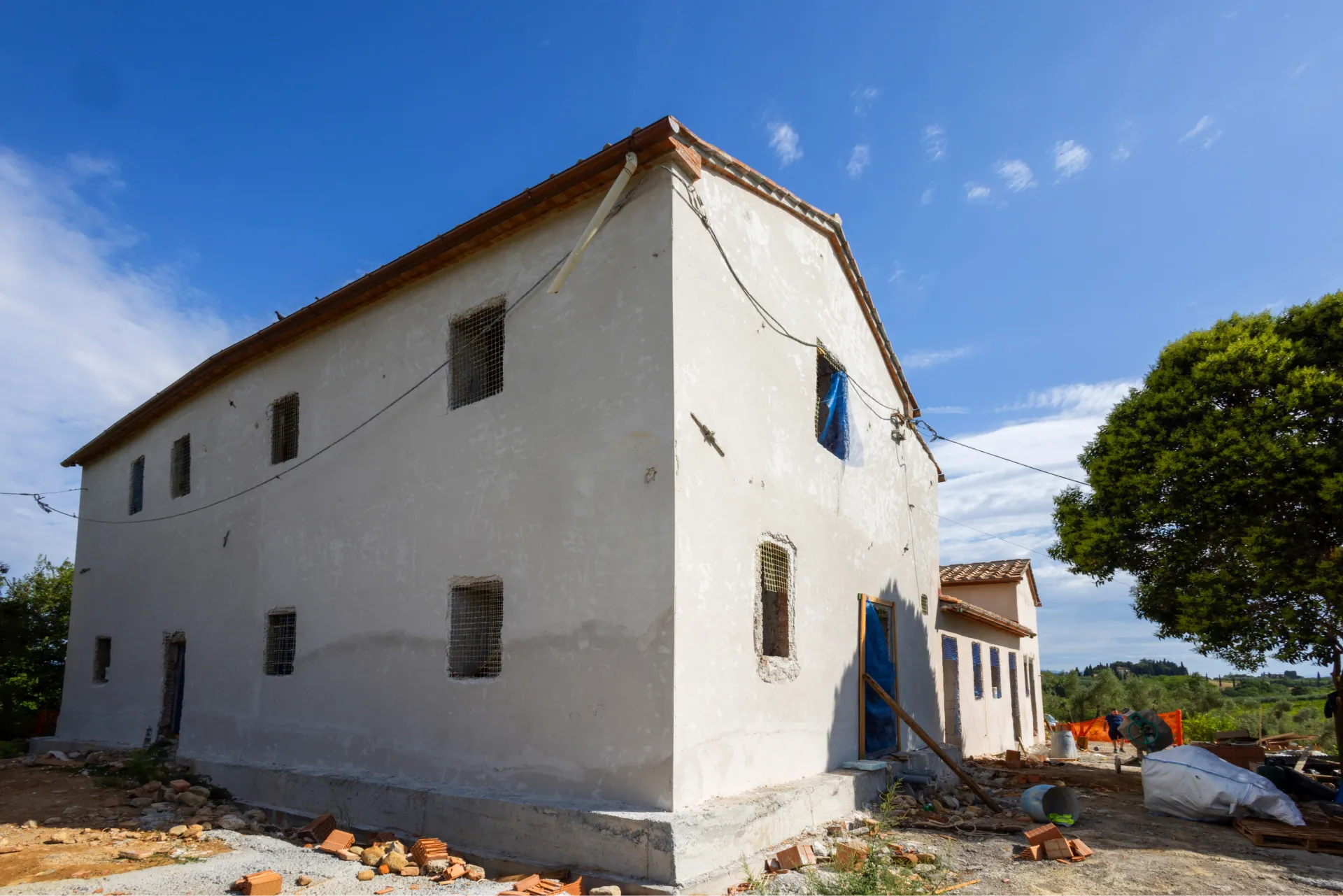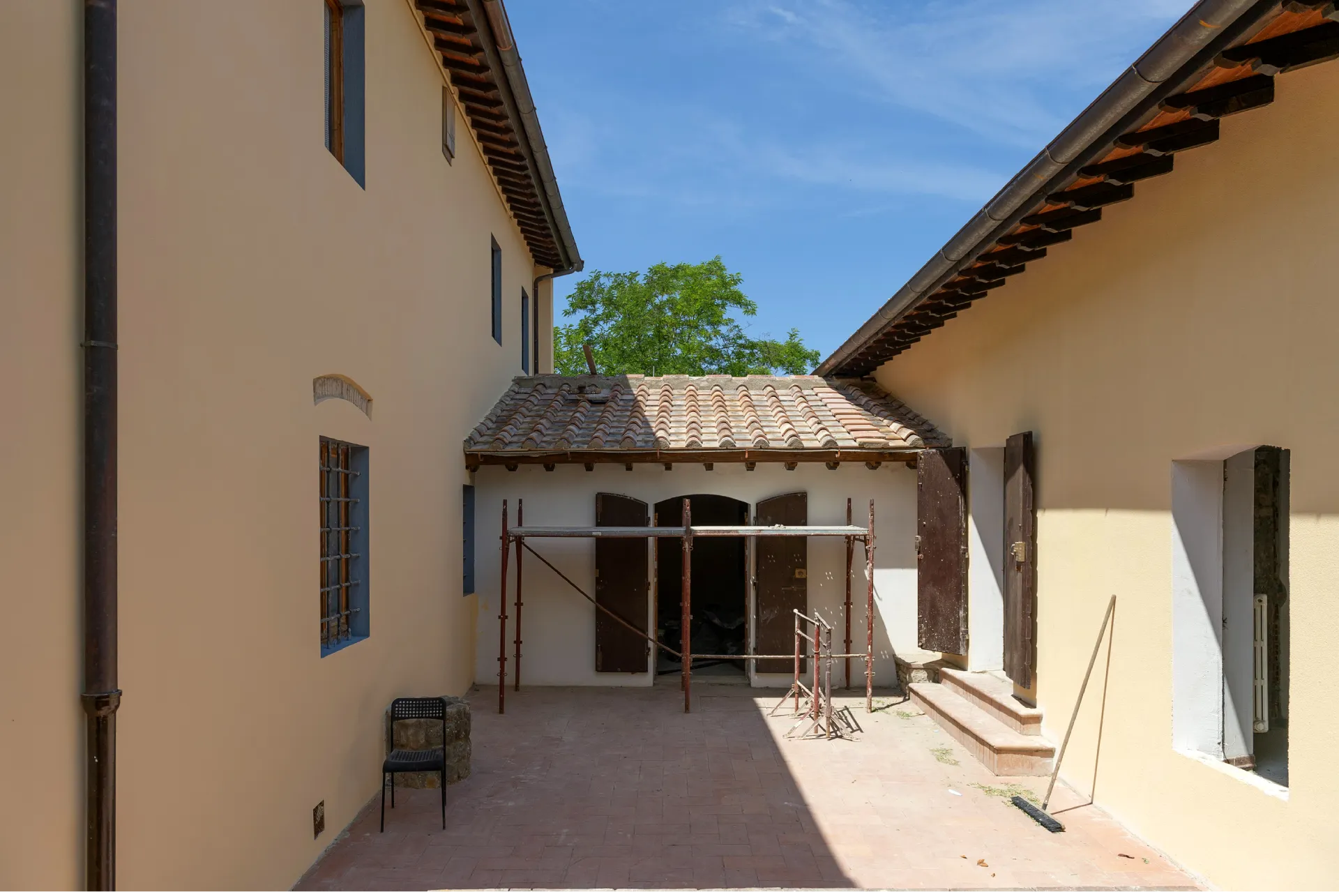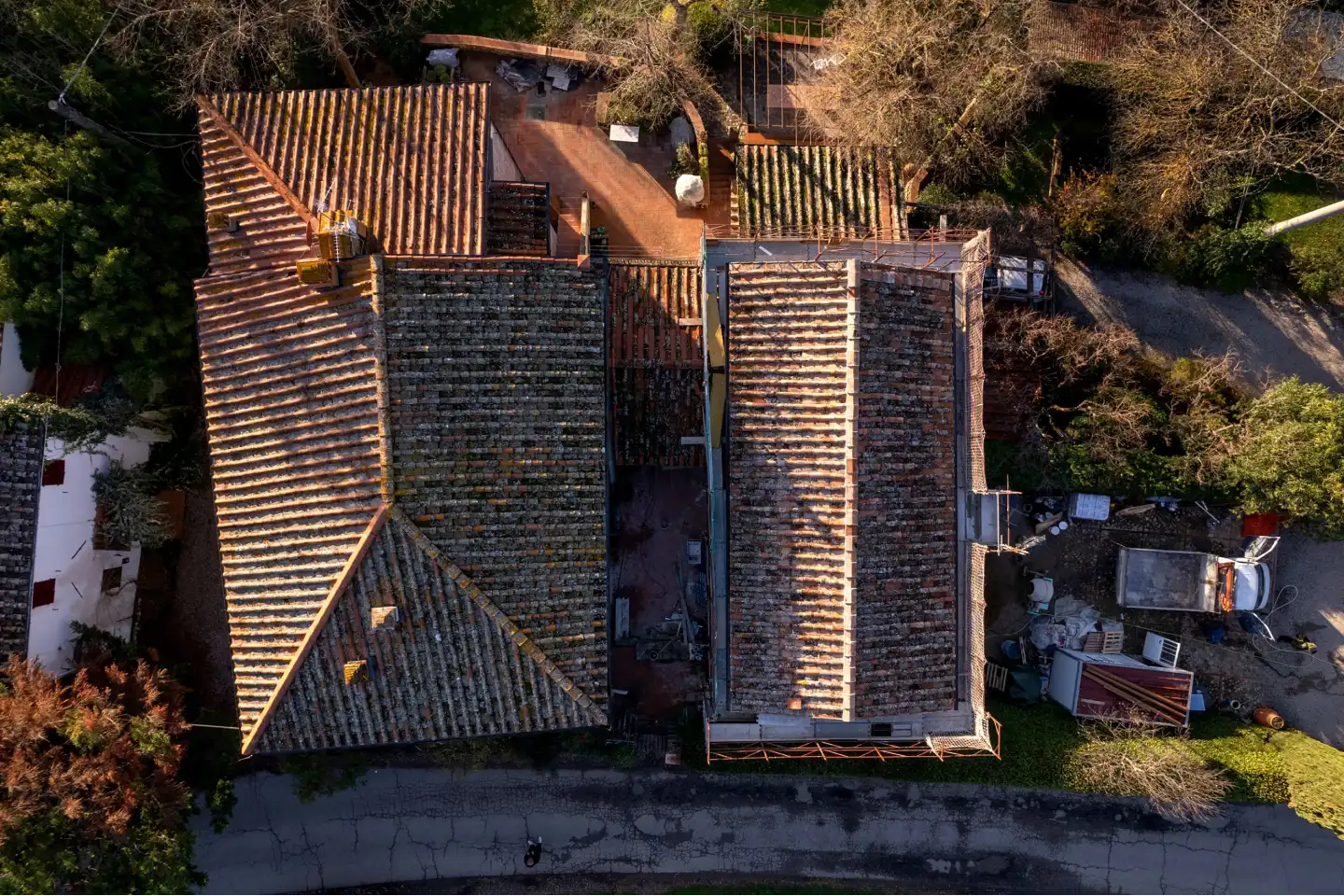 At Via Ripa, we carried out a focused intervention centered on consolidating the exterior walls and fully restoring the roof. The property, originally a 17th-century manor house, had seen various additions over time, including 19th-century extensions and a barn added as recently as the 1960s-70s.