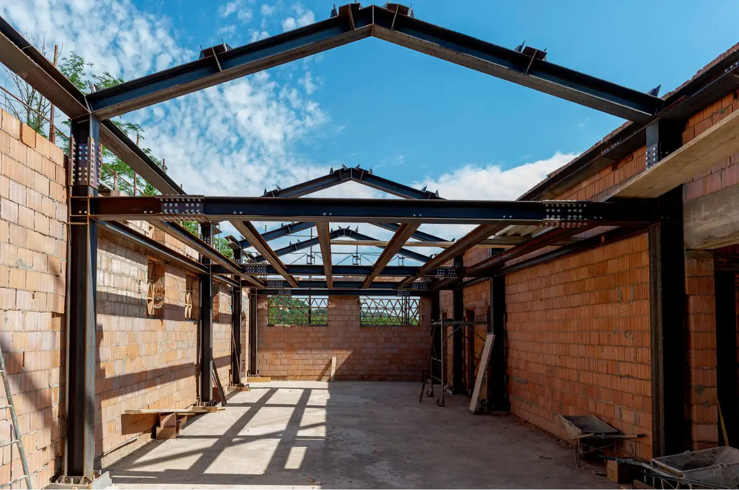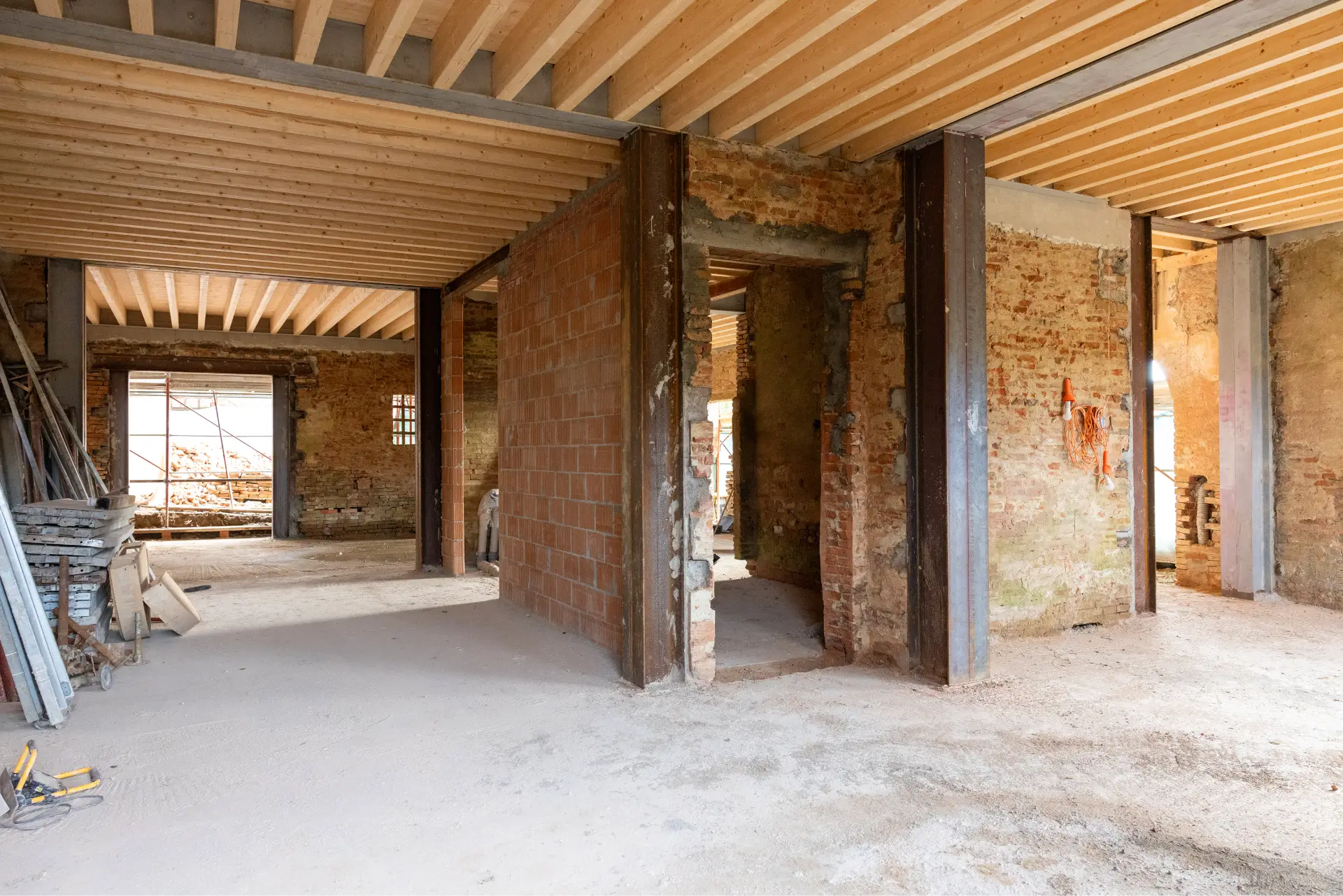 The outer walls were reconstructed using a blend of local stone and new blocks, preserving the original character while ensuring lasting stability. Inside, the steel framework provides modern strength and safety without compromising the building’s traditional appearance. From structure to finishes, every stage of the intervention was carried out by our engineers.