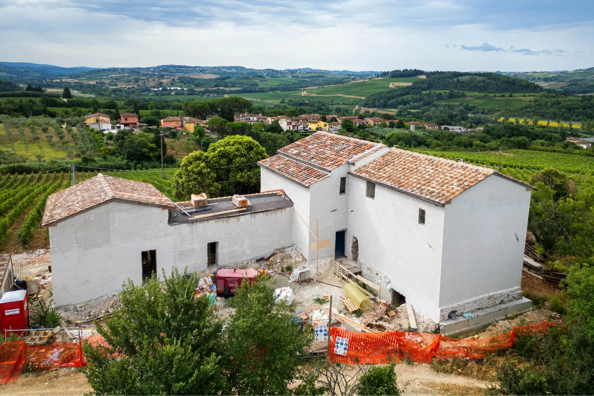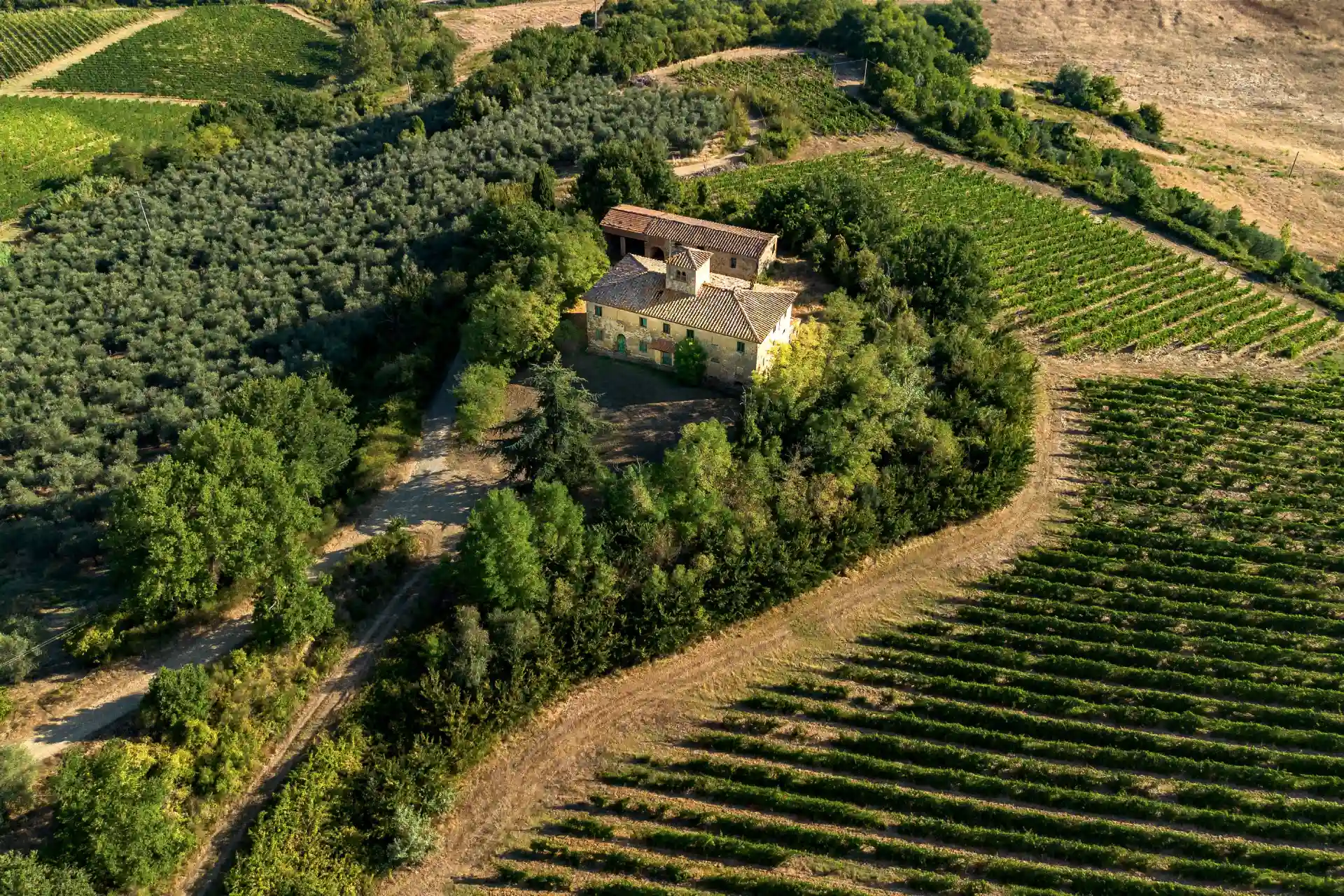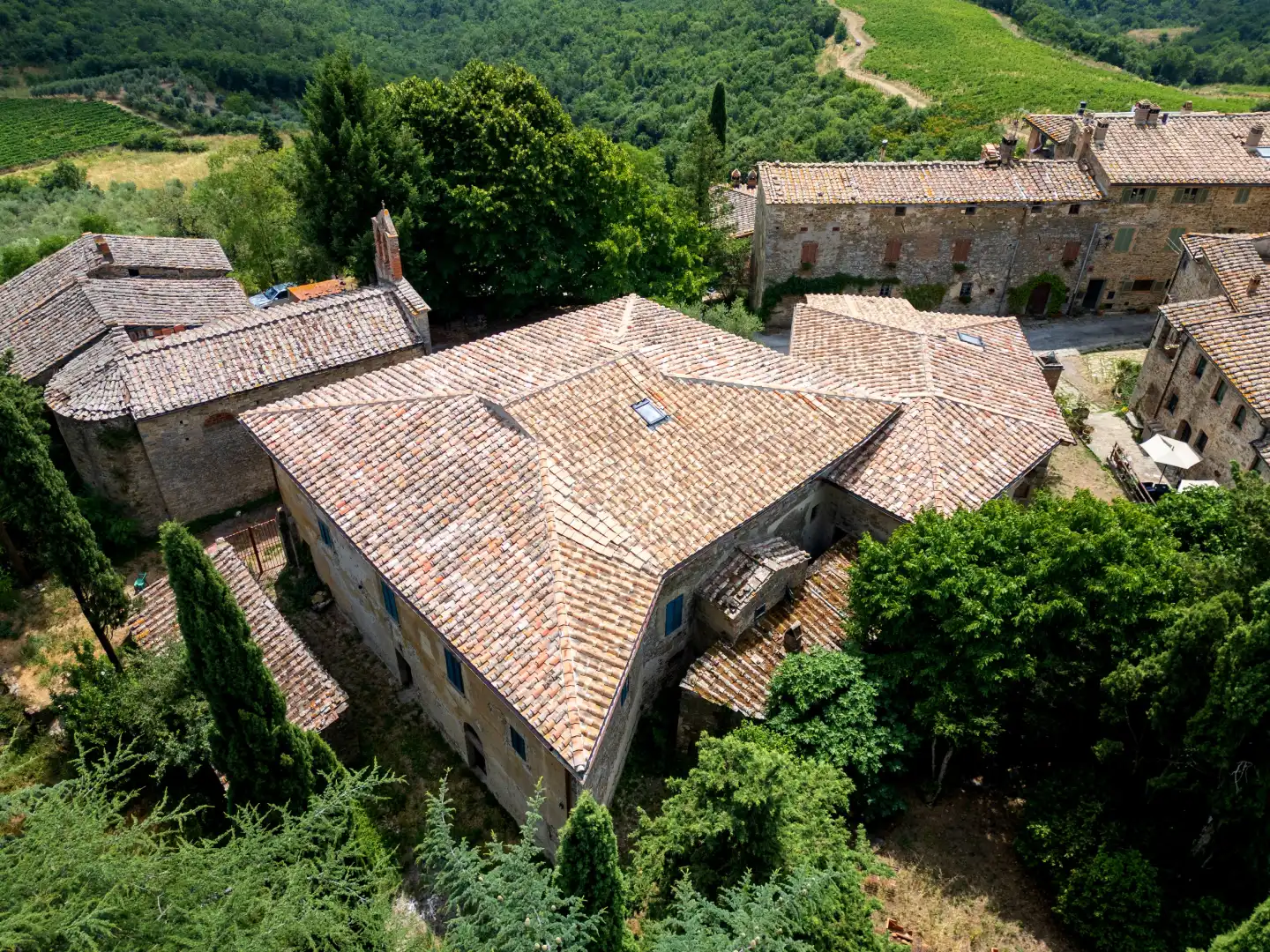 Set in the heart of Florence’s rolling hills, the estate looks out across the world-renowned Chianti Classico DOCG vineyards, where centuries of winemaking tradition meet breathtaking landscapes. Just beyond, an ancient monastery from 890 AD stands as a reminder of Tuscany’s enduring heritage, while nearby villages provide all daily essentials with authentic local character.