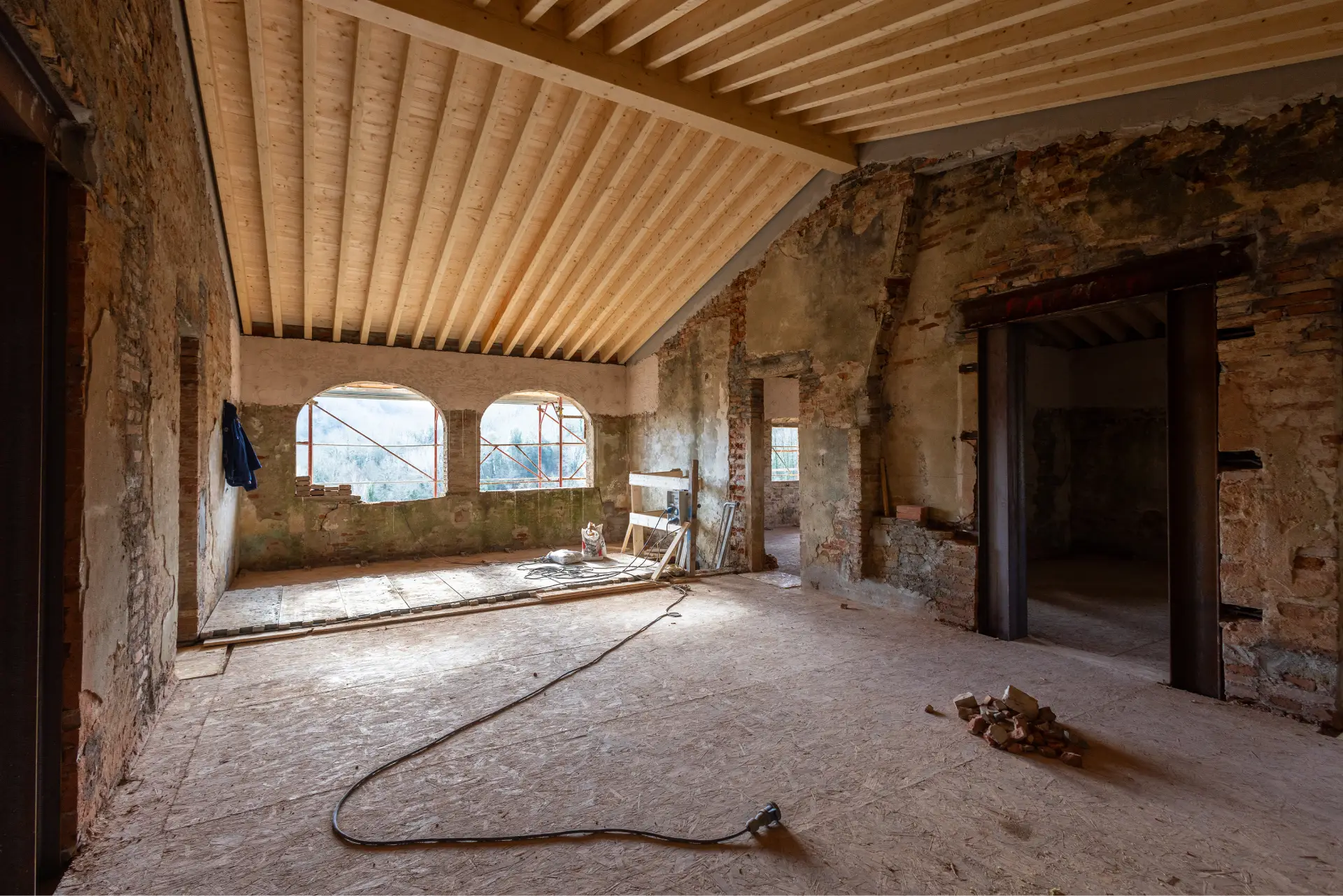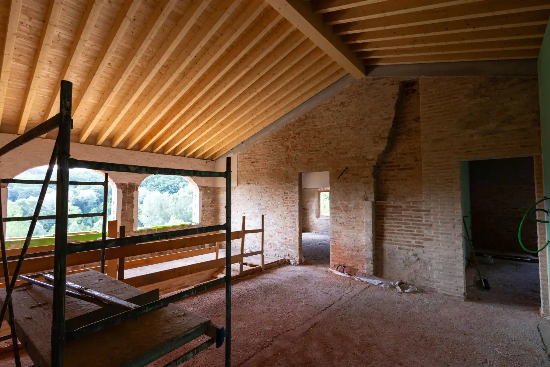 Our engineers designed and are carrying out the structural work, consolidating the building and carefully restoring its roofs to ensure both strength and authenticity. The interiors are reimagined with a fresh, elegant identity, striking a balance between historic character and contemporary comfort for luxury living.