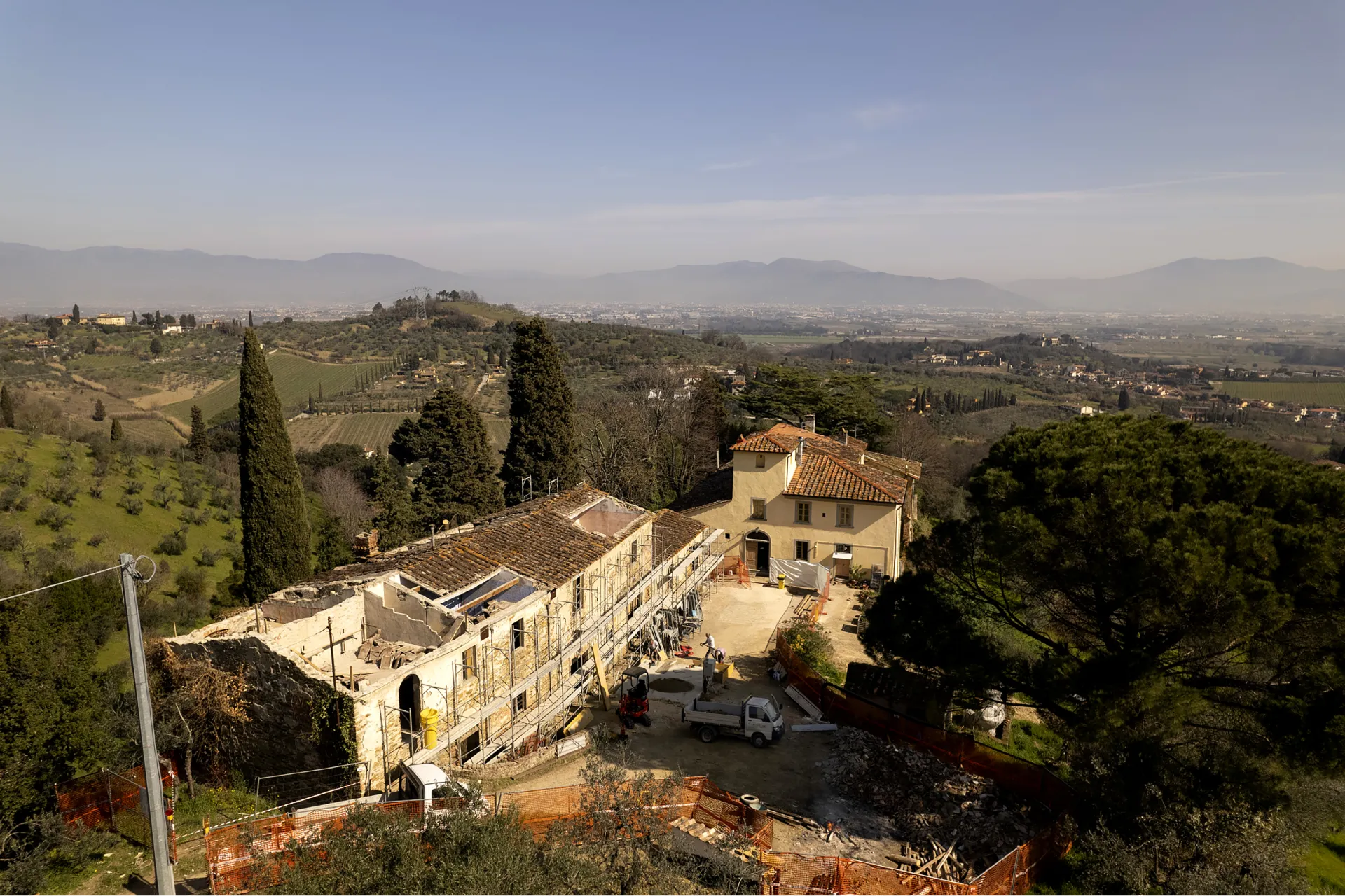 This historic farmhouse, set between Ginestra Fiorentina and Lastra a Signa, is being carefully restored into an elegant Tuscan residence. With origins possibly dating back to the 16th century, the property has evolved over time, expanding to meet the needs of generations past.