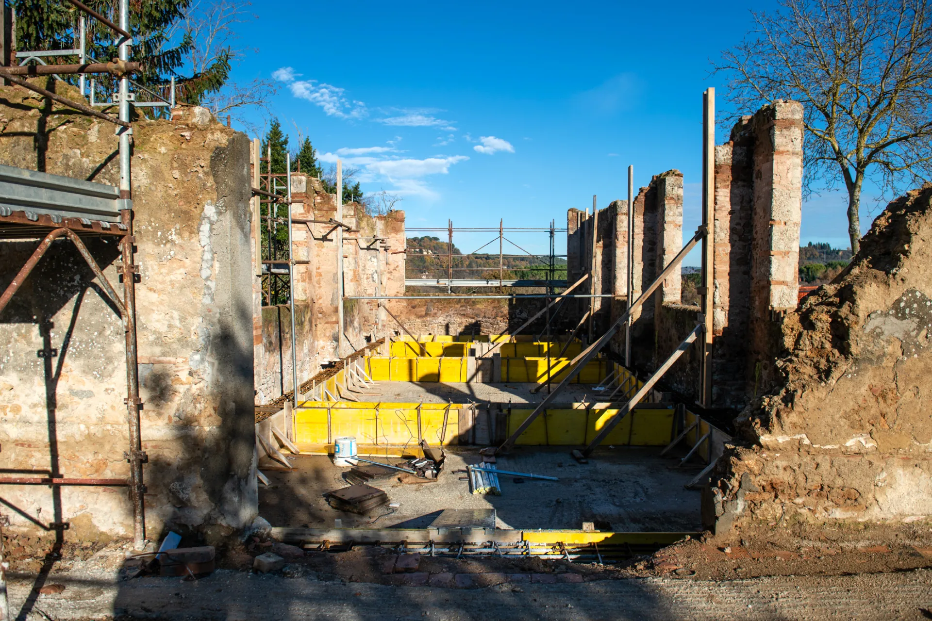 Our engineers reinforced the existing vaults, strengthened foundations, and applied reinforced plaster to the masonry for improved seismic resistance. We also carried out a full renovation of the roof and floor slabs, rebuilding them with a modern wood-and-steel structure.