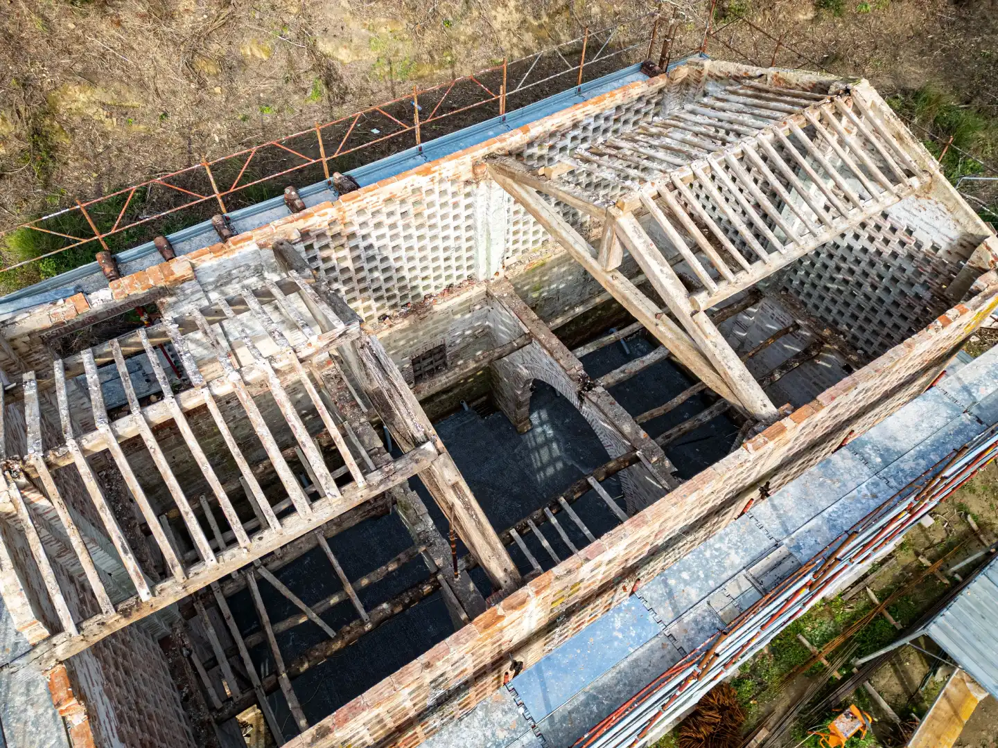 This project was a complete roof reconstruction and reinforcement of the masonry to safeguard the building’s stability.